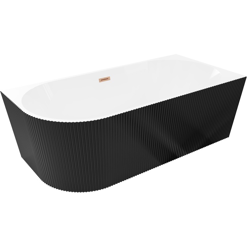 Specifikace produktu: Rozměr: 150 x 75 cm Výška: 58 cm Hloubka: 42,5 cm Montáž: Rohová, Levá Materiál: Sanitární akrylát Barva: Bílá/Černá Povrchová úprava: Kartáčovaná měď Konstrukce: Drážkovaná Otvor pro přepad: Ano Otvor pro baterii: Ne Sifon a zátka click-clack jsou součástí dodávky Odolné vůči baterii, baterii a UV záření