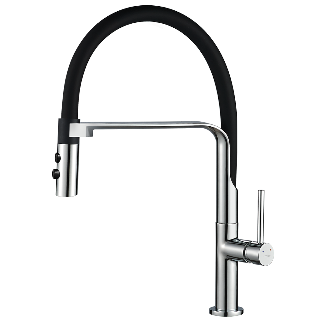 Kuchyňské baterie Siluetto představují ideální spojení stylu, inovace a praktičnosti. Dostupné ve třech moderních barevných provedeních – chrom/ černá, grafit/ černá a černá – umožňují snadno sladit baterii s jakýmkoli kuchyňským interiérem.