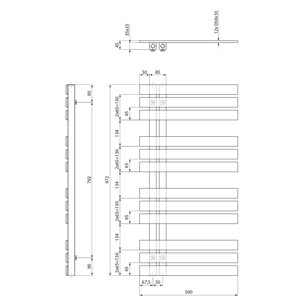 Topení s připojovací roztečí 50 mm