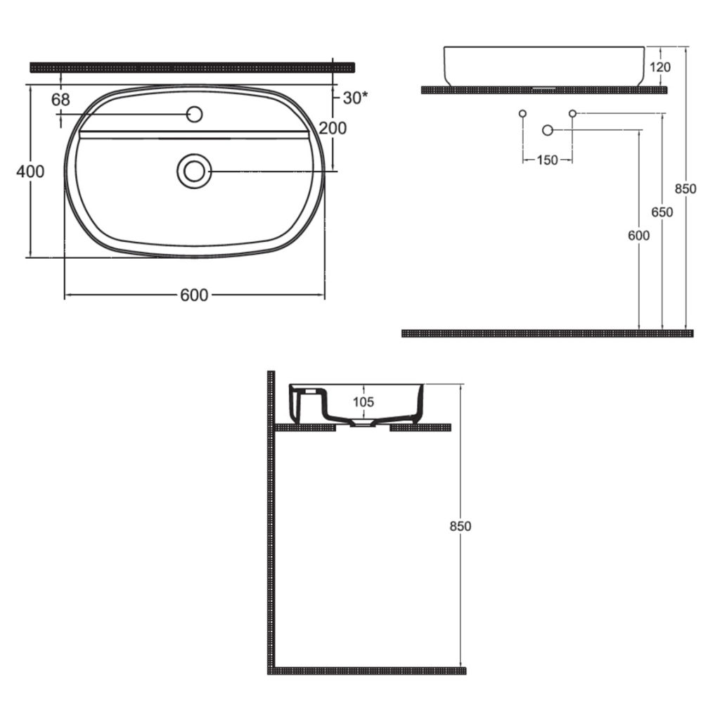 | Typ umyvadla | Umyvadlo na desku |