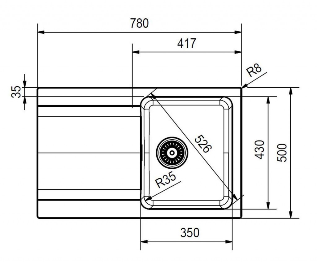 - dřez 350 × 432 × 200 mm
