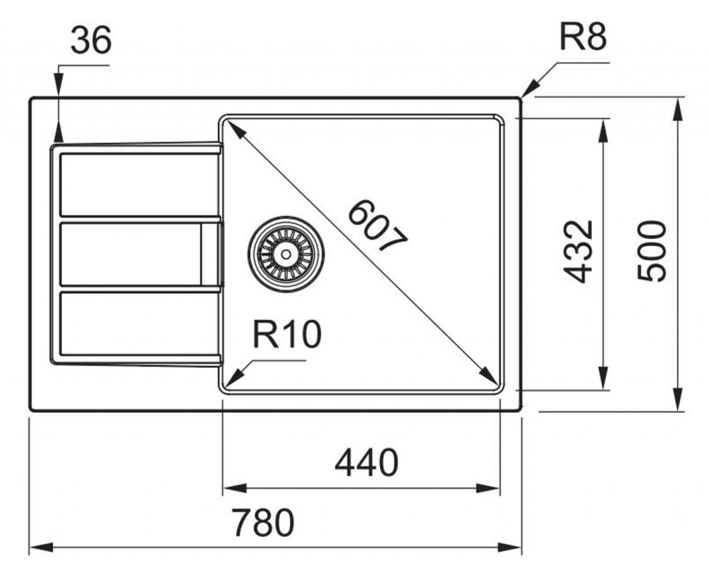 - dřez 440 x 432 x 200 mm