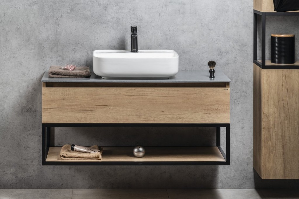 Konstrukce ze série SKARA jsou vhodné do koupelen zařizovaných v moderním i industriálním stylu. Skvěle je doplní vysoká skříňka SKARA ve stejném dekoru nebo skříňky a zrcadla TREOS s rámem v dřevěném dekoru. Perfektní je i kombinace s podsvíceným zrcadlem SORT v černém hliníkovém rámu.