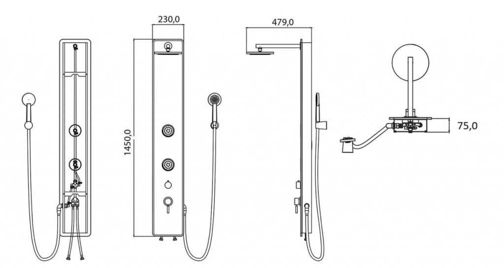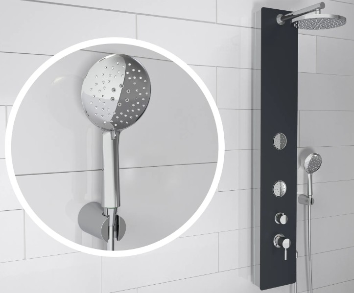 Panel je vybaven 2 masážními tryskami a 3cestným nastavením, které umožňuje volit mezi horní sprchou, ruční sprchou a masážními tryskami podle vašich potřeb. Trysky jsou chráněny proti vodnímu kameni, což zajišťuje snadnou údržbu a dlouhodobý výkon.