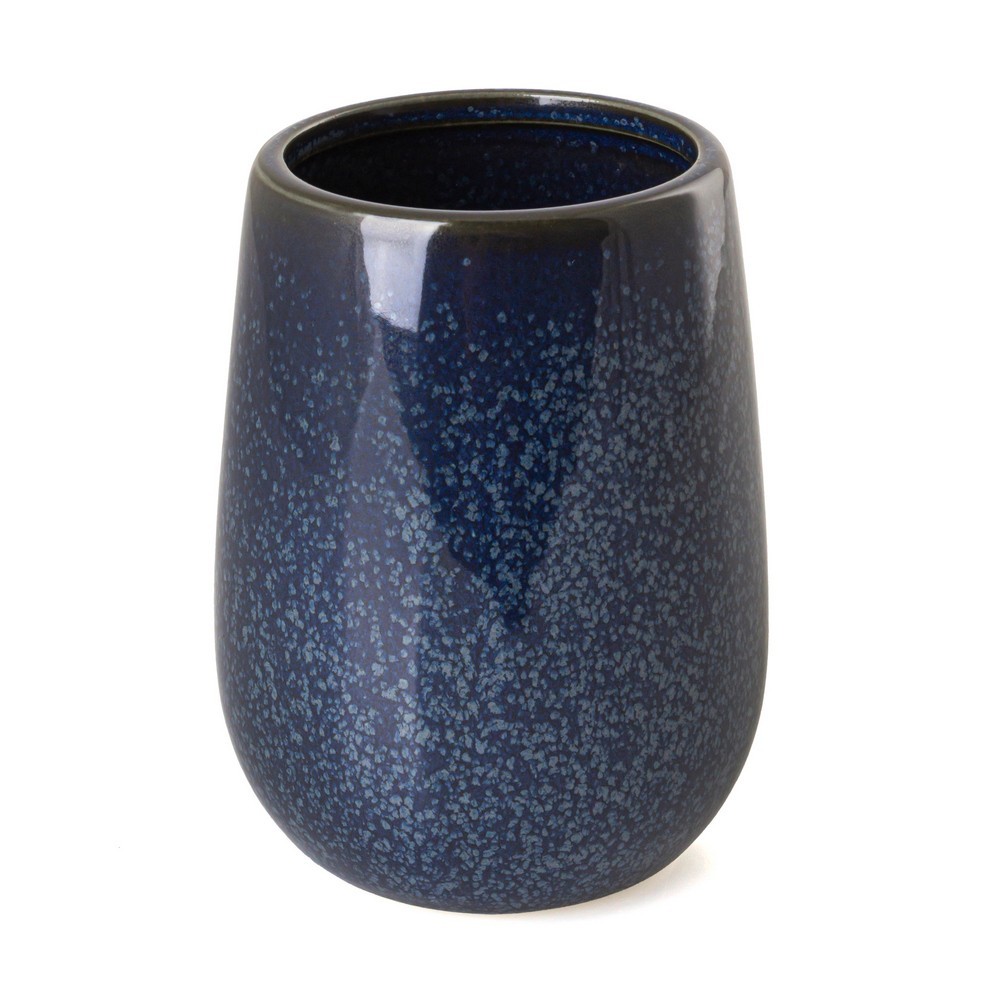 Sklenka Friki o objemu 400 ml je elegantním a praktickým doplňkem do každé koupelny. Je vyrobena z vysoce kvalitní kameniny v tmavě modré barvě a vyznačuje se jedinečným skvrnitým vzorem, který dekoru dodává moderní a stylový nádech. Tento kelímek je ideální pro uložení zubních kartáčků, zubní pasty nebo jiných koupelnových doplňků. Jeho robustní konstrukce zajišťuje odolnost, zatímco jeho estetický design krásně ladí s ostatními prvky ze série Friki a vytváří soudržné a elegantní uspořádání.