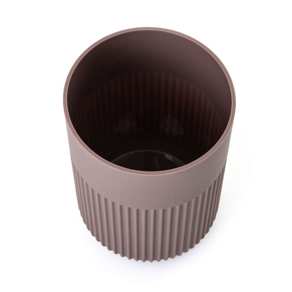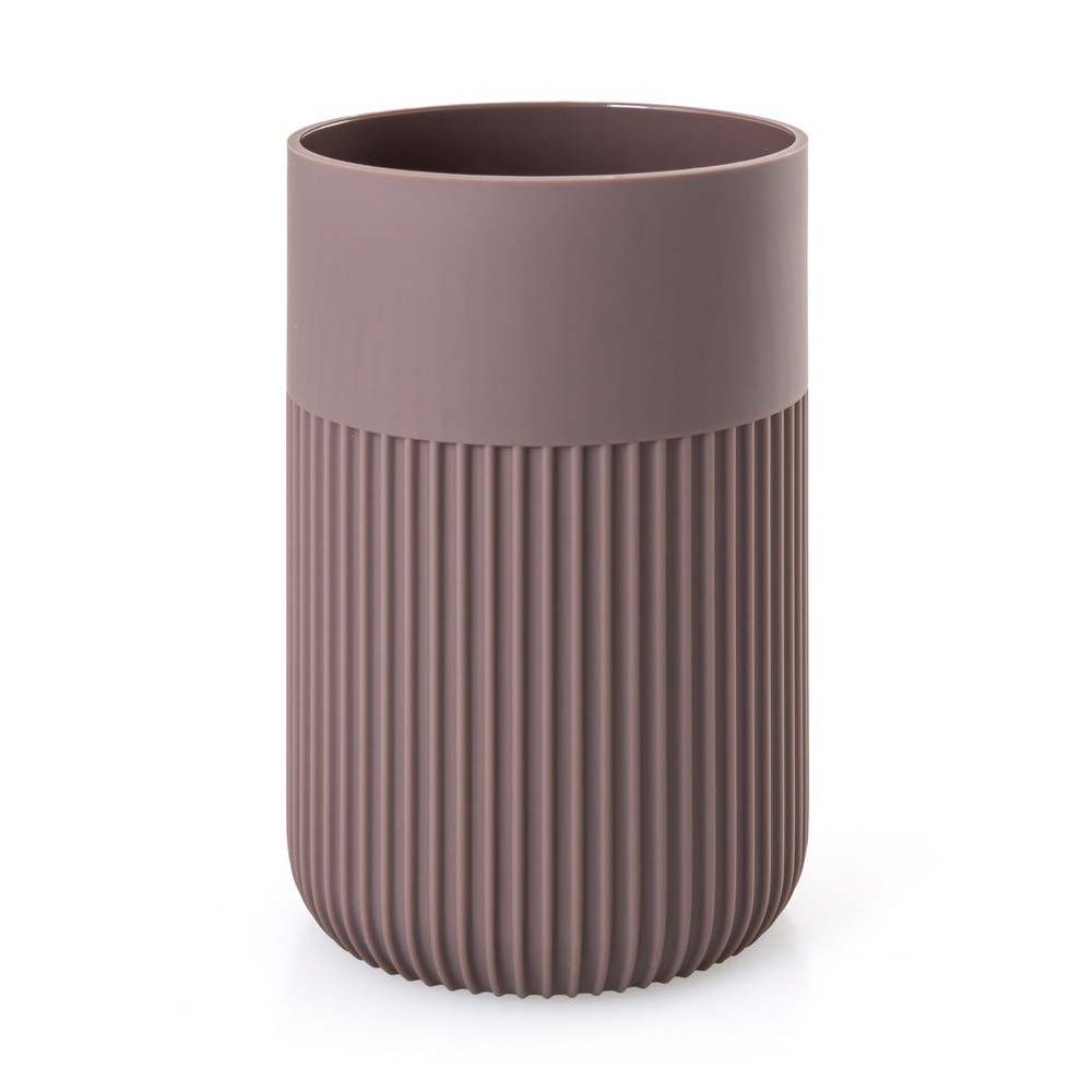 Stojan na zubní kartáčky ze série Loreto v mimořádné tlumené švestkově fialové barvě je skutečnou ozdobou koupelny. Vyrobeno z matného plastu, má elegantní vzhled a díky ozdobným drážkám je mimořádně estetické. Objem 350 ml, umožňuje pohodlné skladování zubních kartáčků a zubní pasty. Pro svou univerzálnost však může posloužit i jako elegantní nádoba na další kosmetické doplňky, jako jsou štětce na makeup nebo řasenka.