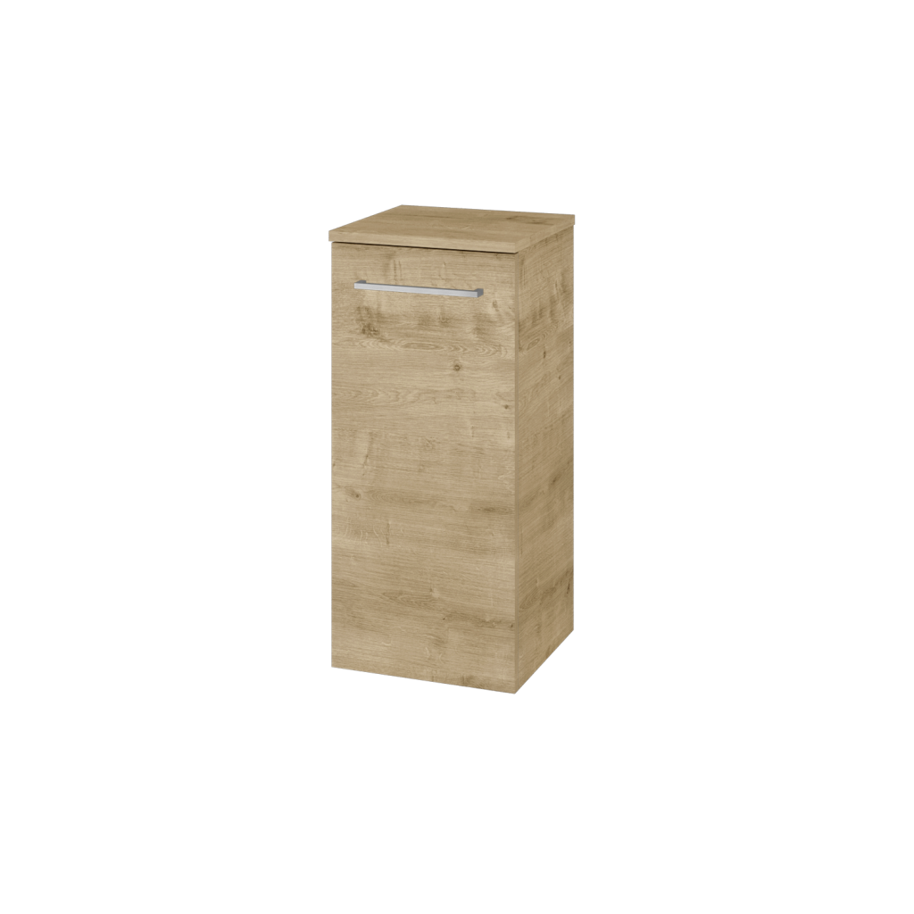 Nízká koupelnová skříň DOS SND 35 v závěsném provedení je vhodná do menších koupelen, jako doplněk k umyvadlovým skříním nebo samostatně, pro úložení ručníků, pracích prášků a jiných předmětů.