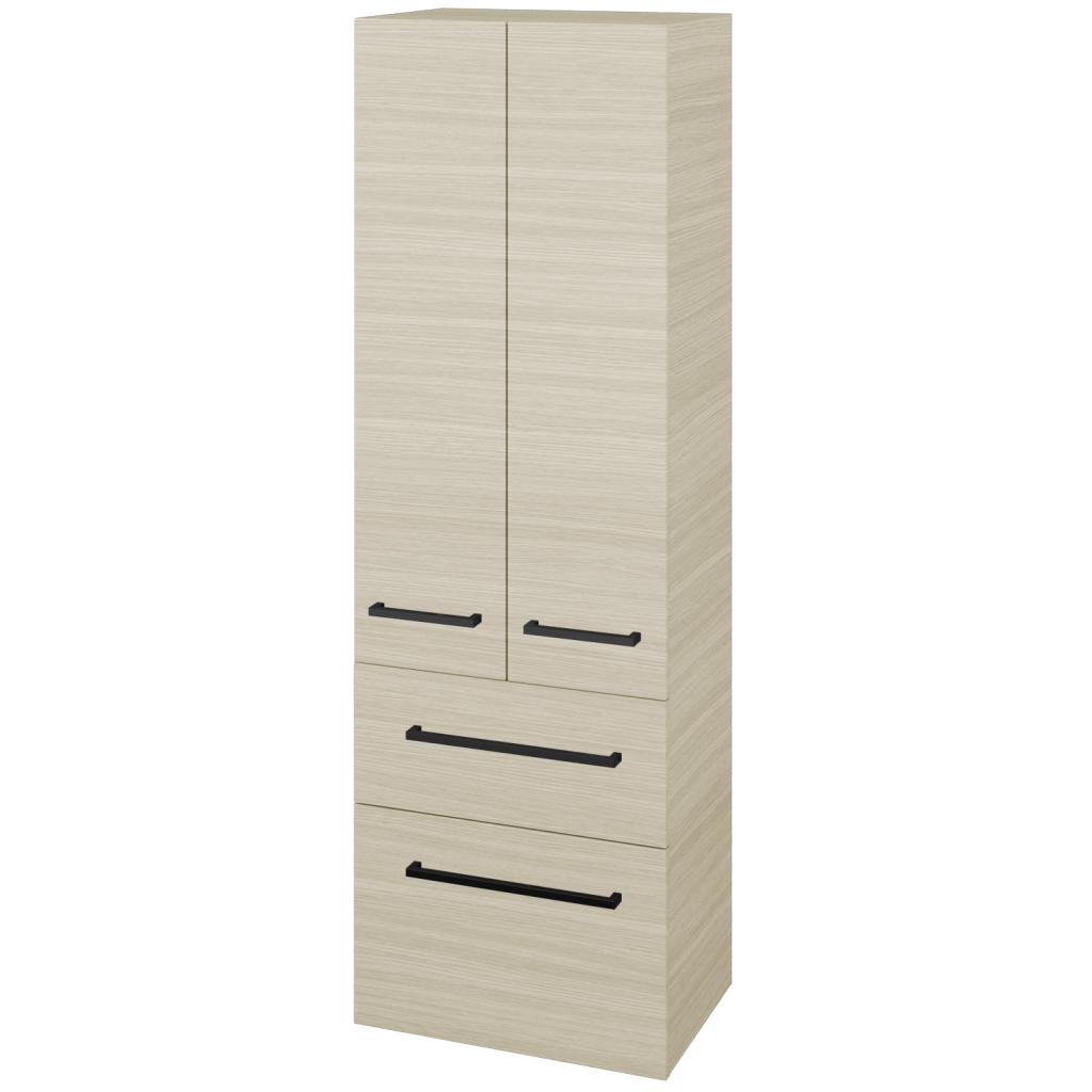 Velký úložný prostor nabízí doplňková skříň DOS SVD2Z2 50, která je díky svému řešení velmi praktická, univerzální a vhodná do středně nebo větších koupelen.