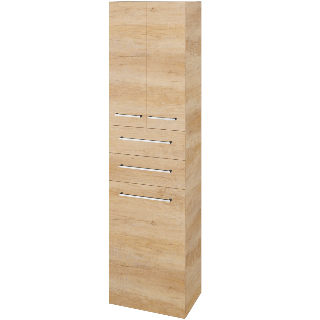 Maximum úložného prostoru nabízí doplňková skříň DOS SVD3Z2K 50, která je díky svému řešení velmi praktická, univerzální a vhodná do středně nebo větších koupelen.