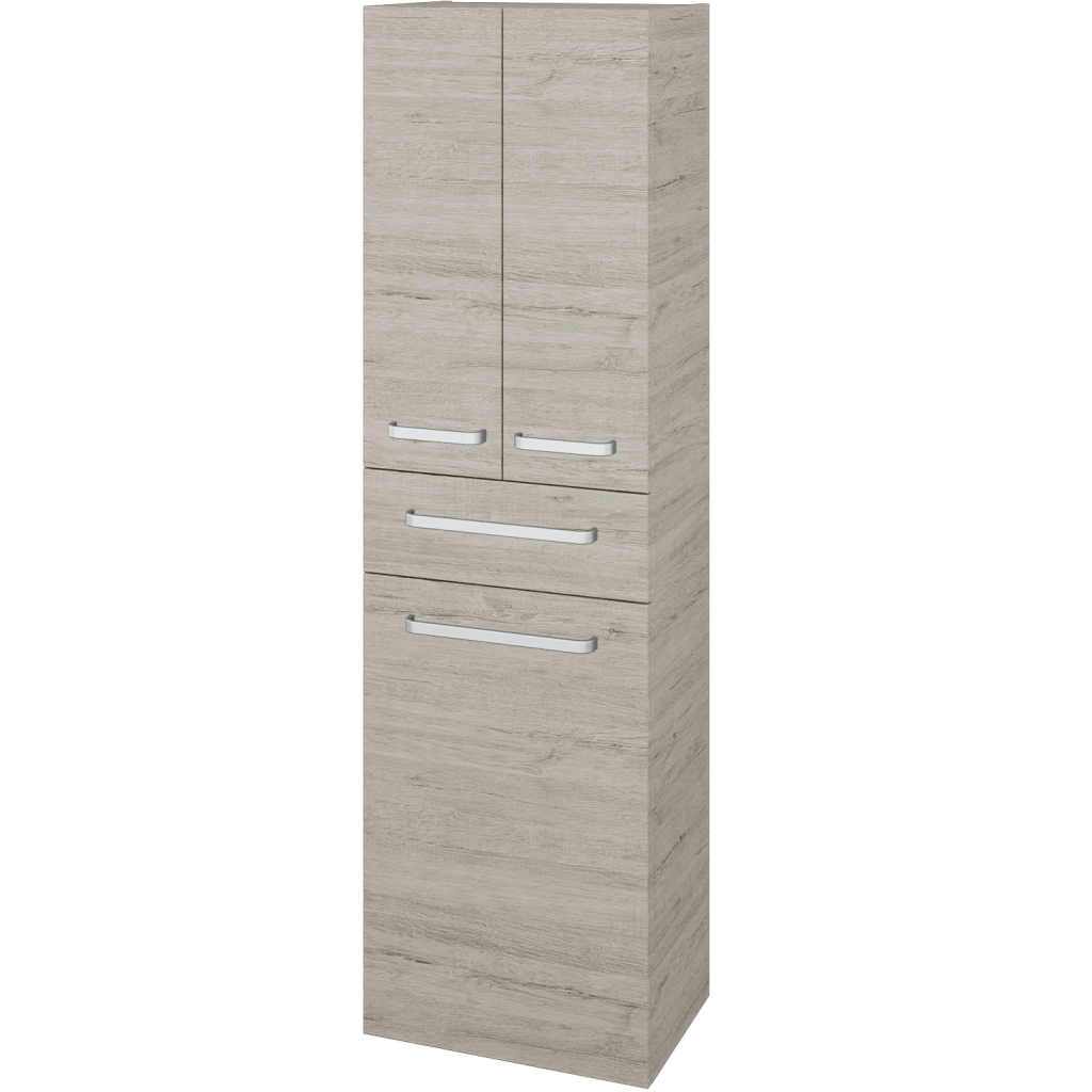 Parametry skříněVysoká skříň DOS SVD3ZK 50 je konstruována jako závěsná. V její horní části se nachází dvojice dvířek zpřístupnující velký prostor, dělený dvojicí skleněných a nastavitelných polic. Ve střední části skříně je zásuvka, na kterou navazuje část s výklopným košem na prádlo. Dvířka a zásuvka jsou uloženy na kování značky Hettich s tlumeným dovíráním, na které dáváme doživotní záruku kvality.