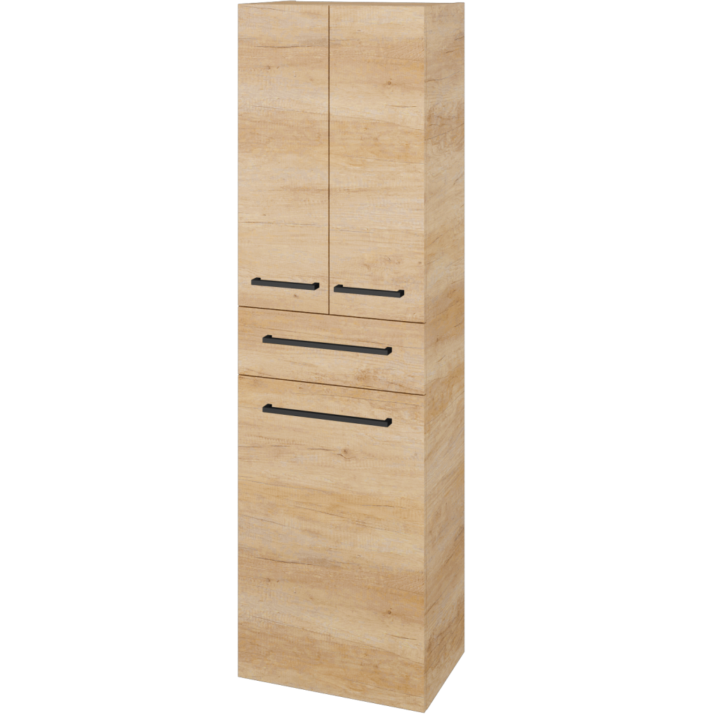 Objemný úložný prostor, kombinovaný s prostorem pro špinavé prádlo, poskytuje vysoká doplňková skříň DOS SVD3ZK 50. Pohodlně v ní uložíte vše potřebné. Od malých drobností do praktické zásuvky, až po větší předměty jako osušky, prací prášky apod.