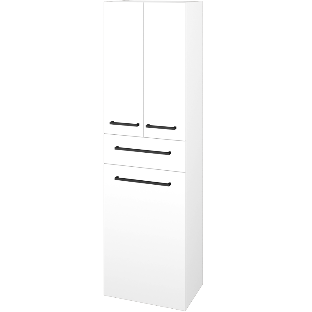Objemný úložný prostor, kombinovaný s prostorem pro špinavé prádlo, poskytuje vysoká doplňková skříň DOS SVD3ZK 50. Pohodlně v ní uložíte vše potřebné. Od malých drobností do praktické zásuvky, až po větší předměty jako osušky, prací prášky apod.