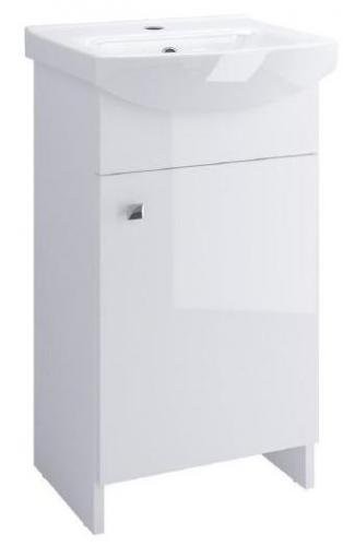 Sestava se skládá z umyvadlové skříňky SATI a nábytkového umyvadla CERSANIA s přepadem a otvorem pro armaturu. Skříňka je bílé barvy s lesklým povrchem a chromovou lesklou úchytkou.