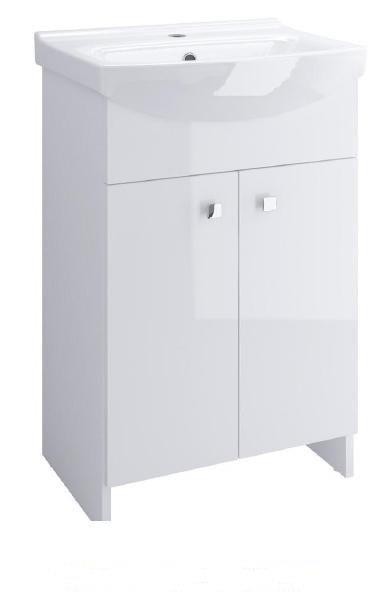 Sestava se skládá z umyvadlové skříňky SATI a nábytkového umyvadla CERSANIA s přepadem a otvorem pro armaturu. Skříňka je bílé barvy s lesklým povrchem a chromovými lesklými úchytkami.