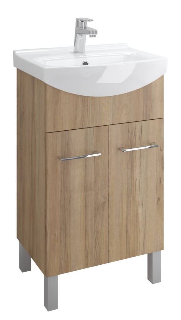 Umyvadlová skříňka OLIVIA v barvě ořech, s chromovým madly. Včetně nožiček.