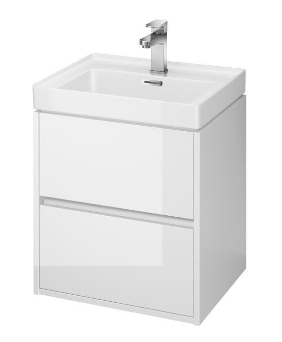 Závěsná umyvadlová skříňka CREA 50 se dvěma výsuvnými boxy v bílém lesklém provedení a elegantním šedým lněným vnitřkem. Vyrobená je z dřevotřískových desek s moderní technologií AQUASAFE /zvýšená odolnost proti vlhkosti/. Skříňka působí elegantním vzhledem díky zapuštění přední části a využití skrytých madel. Zásuvky jsou vybavené pojezdy "HAFELE" s plným výsuvem a tichým uzavíracím systémem, který zvyšuje komfort používání. Skříňka lze kombinovat s umyvadly CREA, MODUO, CITY, COMO a COLOUR.