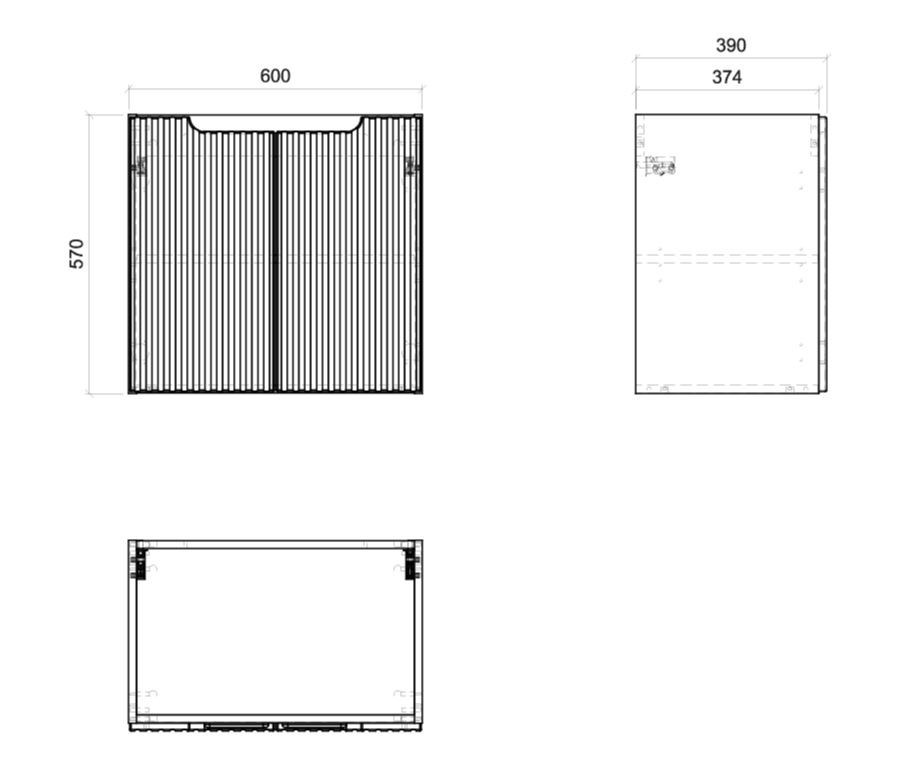 - Rozměry: Šířka 60 cm, výška 57 cm, hloubka 39 cm
