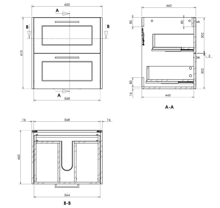 - Rozměry: 60 × 61 × 46 cm (š × v × h)