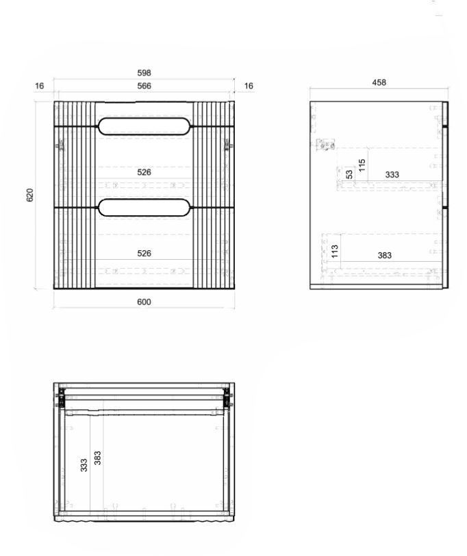 - Rozměry: Šířka 60 cm, výška 62 cm, hloubka 46 cm