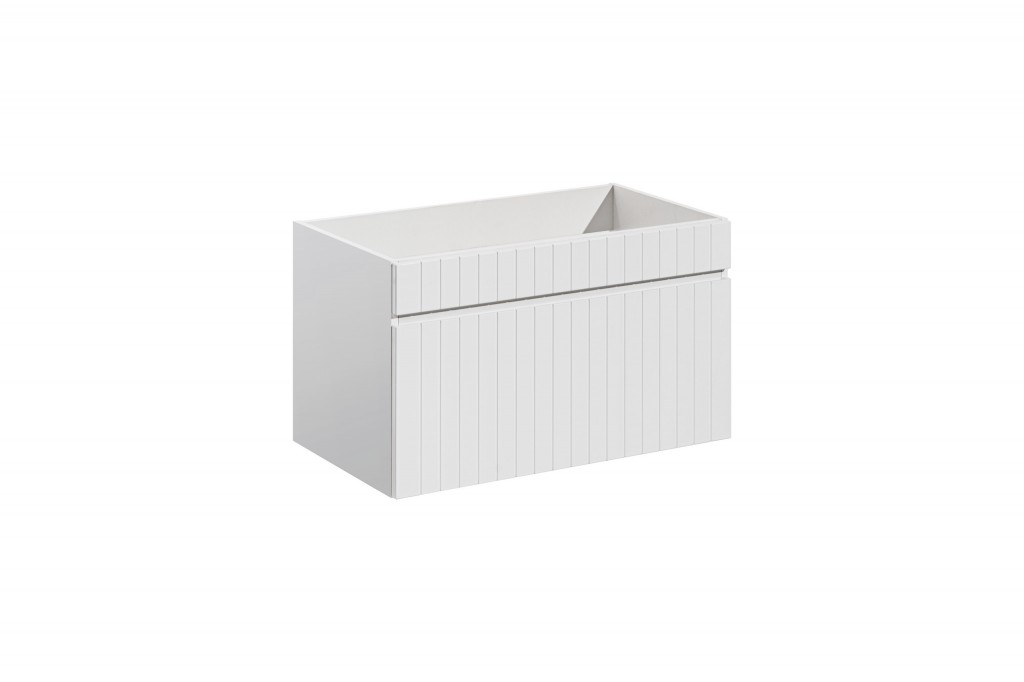 IKONICKÁ BÍLÁ 82-80-D-1S je moderní umyvadlová skříňka o šířce 80 cm, vybavená jednou prostornou zásuvkou, která poskytuje praktický úložný prostor pro každodenní potřeby v koupelně.