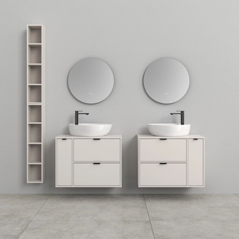 Skříňka pod umyvadlo ATRATO 60 v elegantním odstínu kašmír dodá vaší koupelně moderní a sofistikovaný vzhled. Díky závěsnému provedení působí vzdušně a zároveň usnadňuje úklid podlahy. Vyrobena je z kvalitní laminované dřevotřísky o tloušťce 16 mm, která zajišťuje odolnost vůči vlhkosti a každodennímu používání. Dvě prostorné zásuvky s plným dnem poskytují praktický úložný prostor pro kosmetiku či čisticí prostředky.