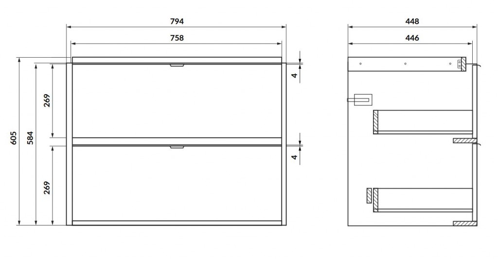 Součástí skříňky není umyvadlo – to je nutné dokoupit samostatně dle vlastních preferencí a prostorových možností.