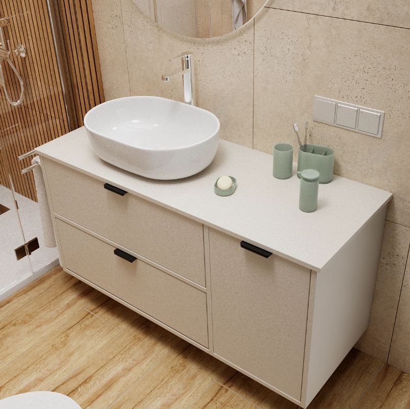 Součástí skříňky není umyvadlo – to je nutné dokoupit samostatně dle vlastních preferencí a prostorových možností.