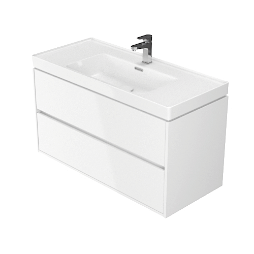 Závěsná umyvadlová skříňka CREA 100 se dvěma výsuvnými boxy v bílém lakovaném provedení a elegantním šedým lněným vnitřkem. Vyrobená je z dřevotřískových desek s moderní technologií AQUASAFE /zvýšená odolnost proti vlhkosti/. Skříňka působí elegantním vzhledem díky zapuštění přední části a využití skrytých madel. Zásuvky jsou vybavené pojezdy "HAFELE" s plným výsuvem a tichým uzavíracím systémem, který zvyšuje komfort používání. Skříňka lze kombinovat s umyvadly CREA a COMO.