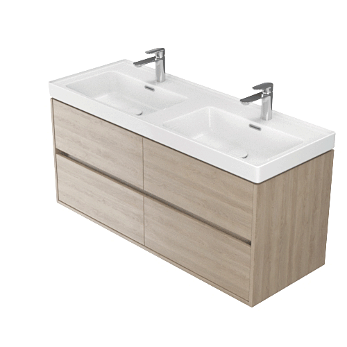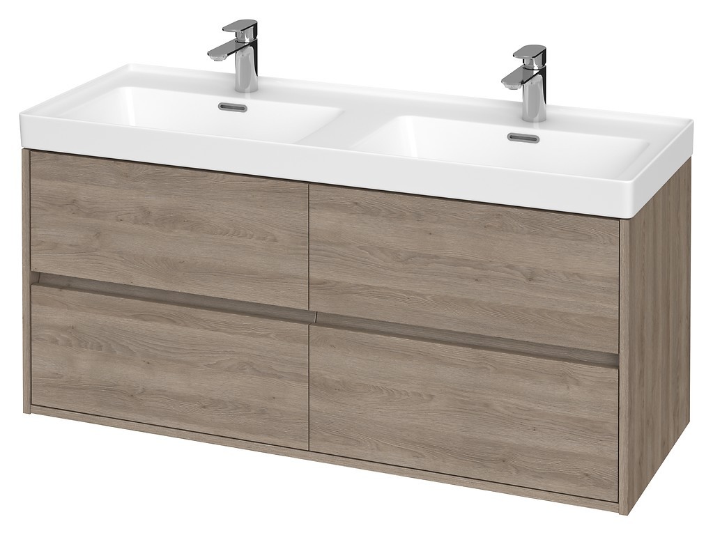 Závěsná dvojumyvadlová skříňka CREA 120 se čtyřmi výsuvnými boxy v dubovém provedení, vyrobená moderní technologií AQUASAFE /zvýšená odolnost proti vlhkosti/. Skříňka působí elegantním vzhledem díky zapuštění přední části a využití skrytých madel. Zásuvky jsou vybavené pojezdy "HAFELE" s plným výsuvem a tichým uzavíracím systémem, který zvyšuje komfort používání.