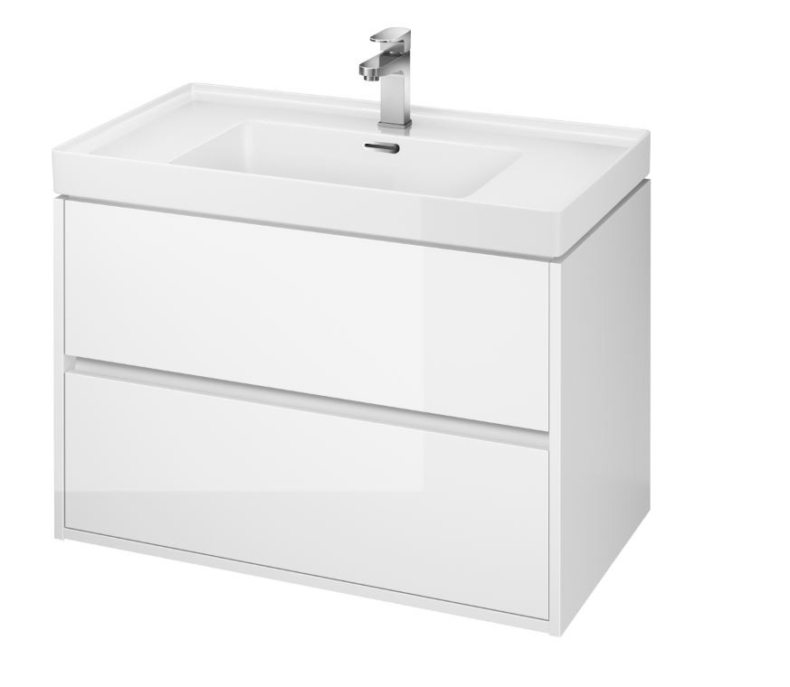 Závěsná umyvadlová skříňka CREA 80 se dvěma výsuvnými boxy v bílém lesklém provedení a elegantním šedým lněným vnitřkem. Vyrobená je z dřevotřískových desek s moderní technologií AQUASAFE /zvýšená odolnost proti vlhkosti/. Skříňka působí elegantním vzhledem díky zapuštění přední části a využití skrytých madel. Zásuvky jsou vybavené pojezdy "HAFELE" s plným výsuvem a tichým uzavíracím systémem, který zvyšuje komfort používání. Skříňka lze kombinovat s umyvadly CREA, MODUO a COMO.