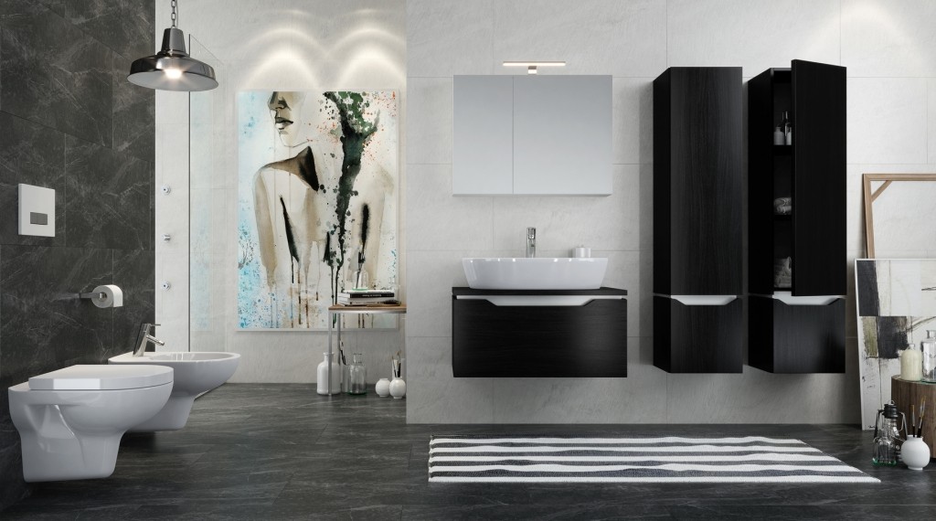Závěsná umyvadlová skříňka STREET FUSION se zásuvkou v černém provedení.