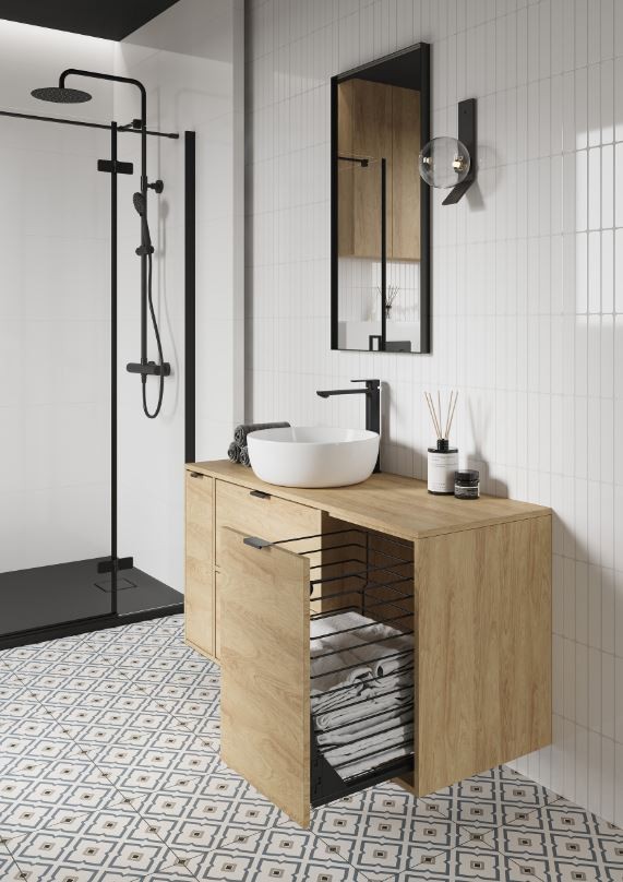 Závěsná koupelnová skříňka ATRATO 40 v dekoru dub je praktickým řešením pro každodenní organizaci prádla. Je vybavena výklopným košem na špinavé prádlo, který diskrétně ukryje obsah a zároveň usnadní manipulaci. Kombinace funkčnosti a přírodního dřevodekoru přináší do koupelny teplý, moderní vzhled. Skříňka se ideálně hodí do menších i větších koupelen a ladí s dalšími prvky kolekce ATRATO.