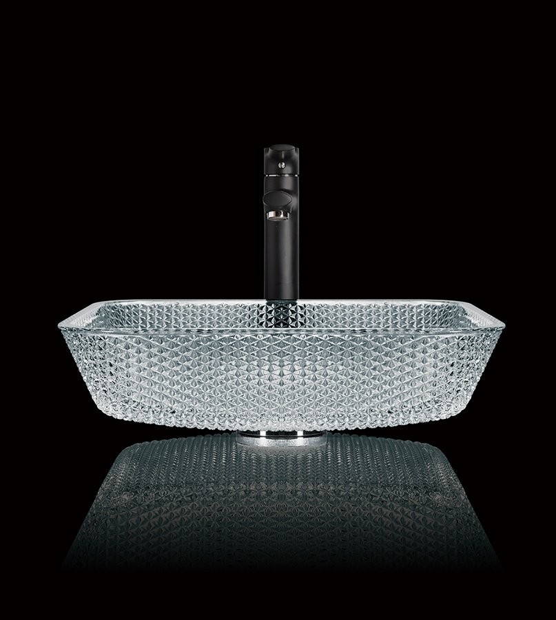 SAPHO - SKYFALL skleněné gravírované umyvadlo, 40x10,5x40 cm, čirá (TY190)