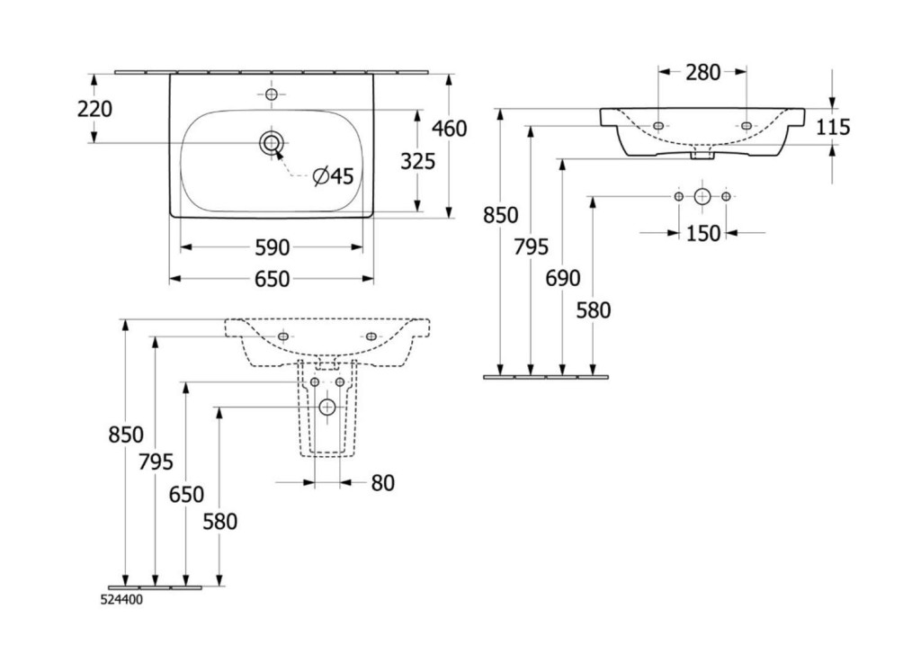 Umyvadlo bez přepadu