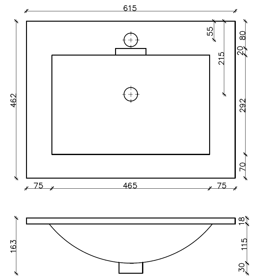 Horní část umyvadla Slim z litého mramoru je tvořena rovnou plochou, která může být využita pro odložení různých předmětů (např. dávkovač mýdla apod.).