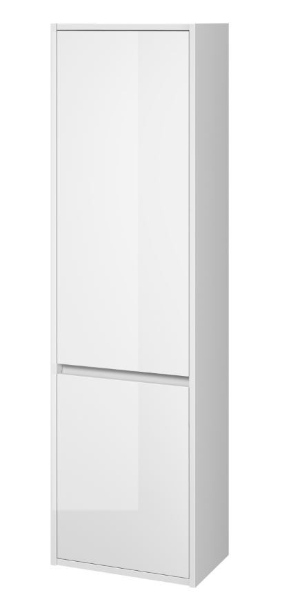 Závěsný nábytkový sloupek CREA s dvěma dvířky v bílém lesklém provedení a elegantním šedým lněným vnitřkem. Skříňka je vyrobena z dřevotřískové desky s moderní technologií AQUASAFE /zvýšená odolnost proti vlhkosti/. Výhodou sloupku je univerzální montáž pravá/ levá, měkké dovírání dveří a nastavitelný závěsný mechanismus. V horní části jsou umístěné dvě nastavitelné police a ve spodní části jedna.