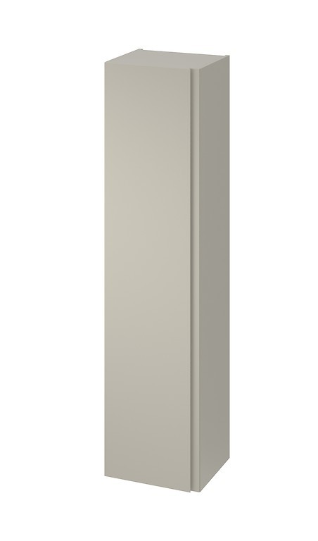 Prostorný nábytkový sloupek pro uložení koupelnových doplňků, přední strana je vyrobena z MDF desky natřené kašmírovou barvou a má pohodlné frézované úchytky. Na vnitřní straně dvířek je namontováno velké vertikální zrcadlo. Pro pohodlné používání jsou dvířka vybavena panty o 165 stupních, které umožňují jejich široké otevření. Pohodlný je také systém tichého zavírání.