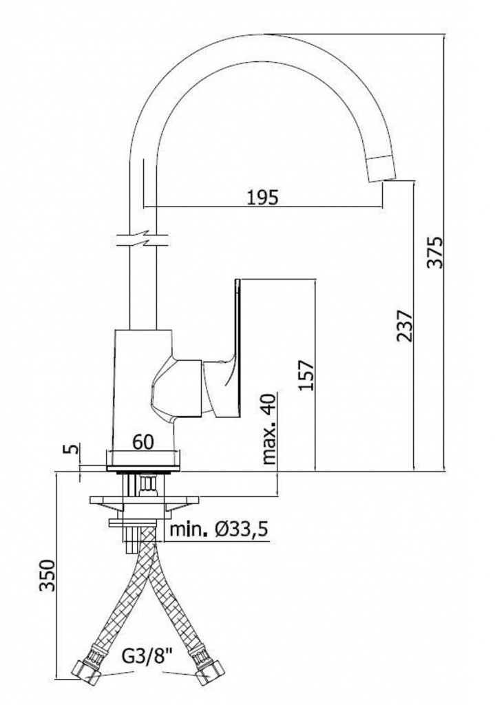 Kuchyňská dřezová stojánková páková baterie s otočným raménkem