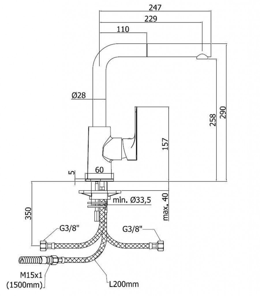 Kuchyňská dřezová stojánková páková baterie s vytahovací sprškou