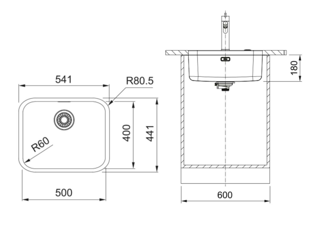 - dřez 180 x 500 x 400 mm (VxŠxH)