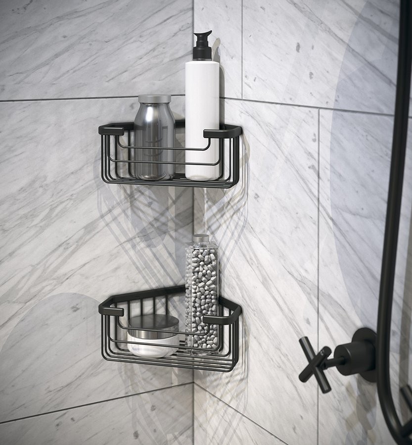 Gedy - SMART rohová police do sprchy, 200x80x151, černá mat (2483-14)