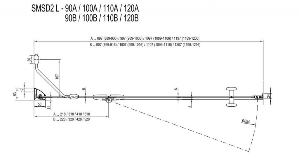 Sprchové dveře Smartline SMSD2 se vyrábí 2 ve variantách. Varianta A je určena pro stavební otvory až o 11 mm menší, než je standardní rozměr výrobku. Varianta B je určena pro stavební otvor až o 16 mm větší, než je standardní rozměr výrobku. Pro kombinaci s pevnou stěnou volte dveře typu SMSD2 B.