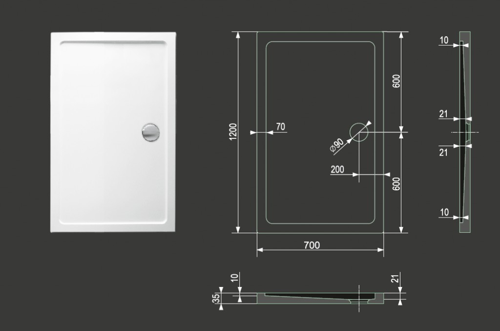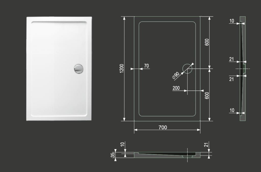 - výška vaničky pouhé 3,5cm pro čistý design ve Vaší koupelně při umístění na podlahu