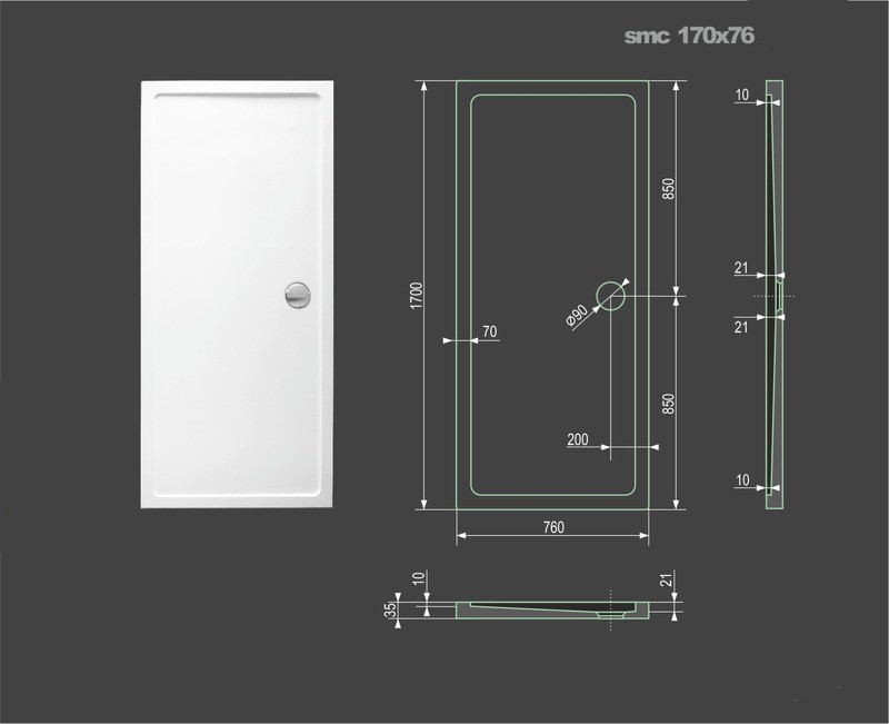 SMC - nízké sprchové vaničky z tvrzeného polymeru. Vhodné pro moderní interiéry. Vyznačují se vysokou pevností. Navíc obsahují antibakteriální úpravu povrchu, odolnou proti růstu bakterií a plísní, které jsou charakteristické pro prostředí se zvýšenou vlhkostí.