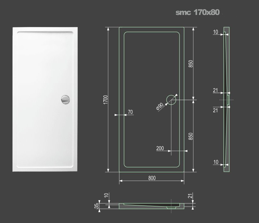 SMC - nízké sprchové vaničky z tvrzeného polymeru. Vhodné pro moderní interiéry. Vyznačují se vysokou pevností. Navíc obsahují antibakteriální úpravu povrchu, odolnou proti růstu bakterií a plísní, které jsou charakteristické pro prostředí se zvýšenou vlhkostí.