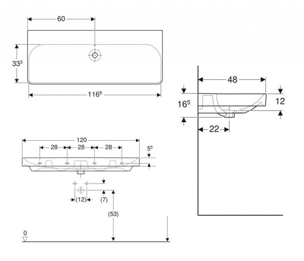 Umyvadlo bez otvoru pro baterii