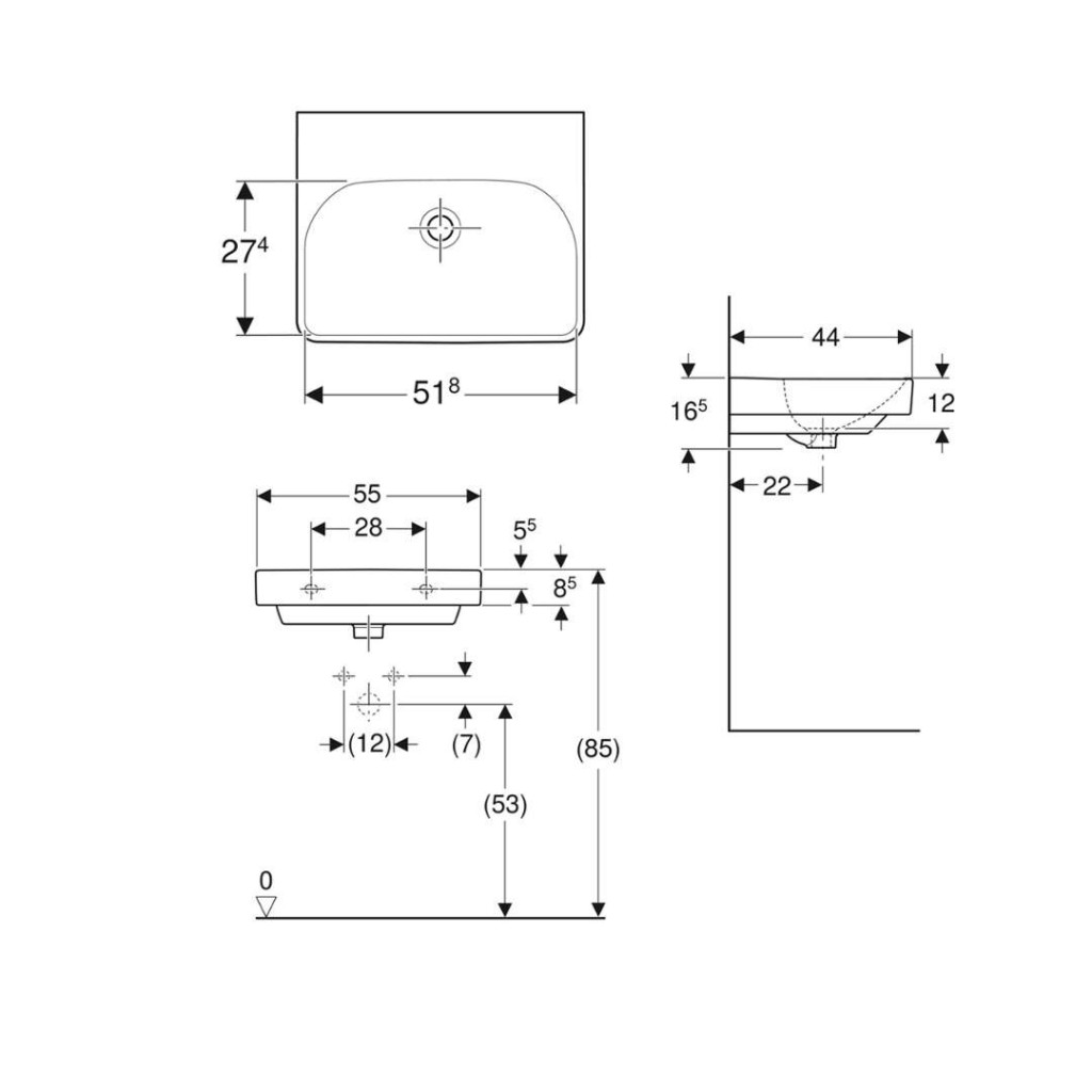 Umyvadlo bez otvoru pro baterii