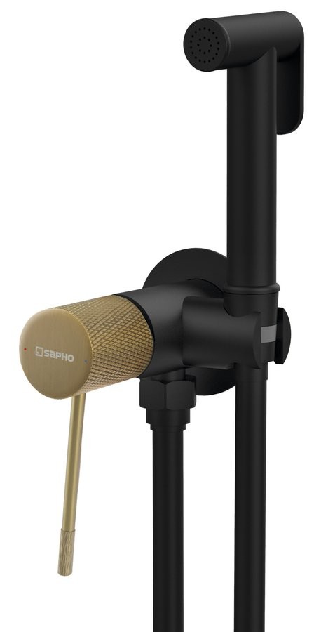 SAPHO - SOLARIS podomítková bidetová baterie se Stop sprškou, kulatá, černá/zlato mat (WD040G)