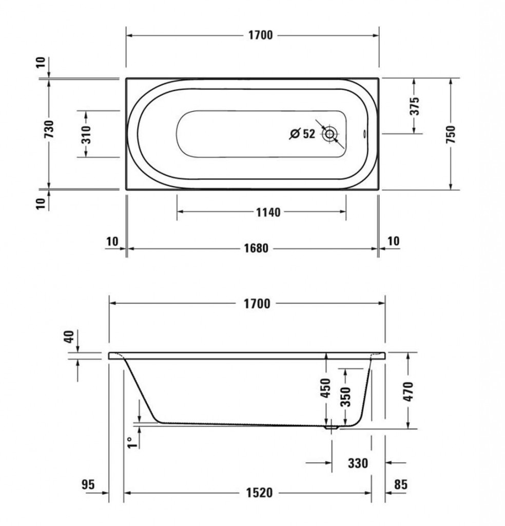 - odtokový otvor průměr 52 mm