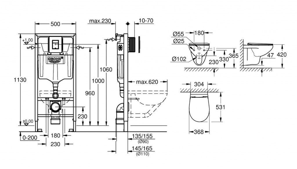 - WC keramika s plochou menší než 205 mm vyžaduje dodatečné příslušenství